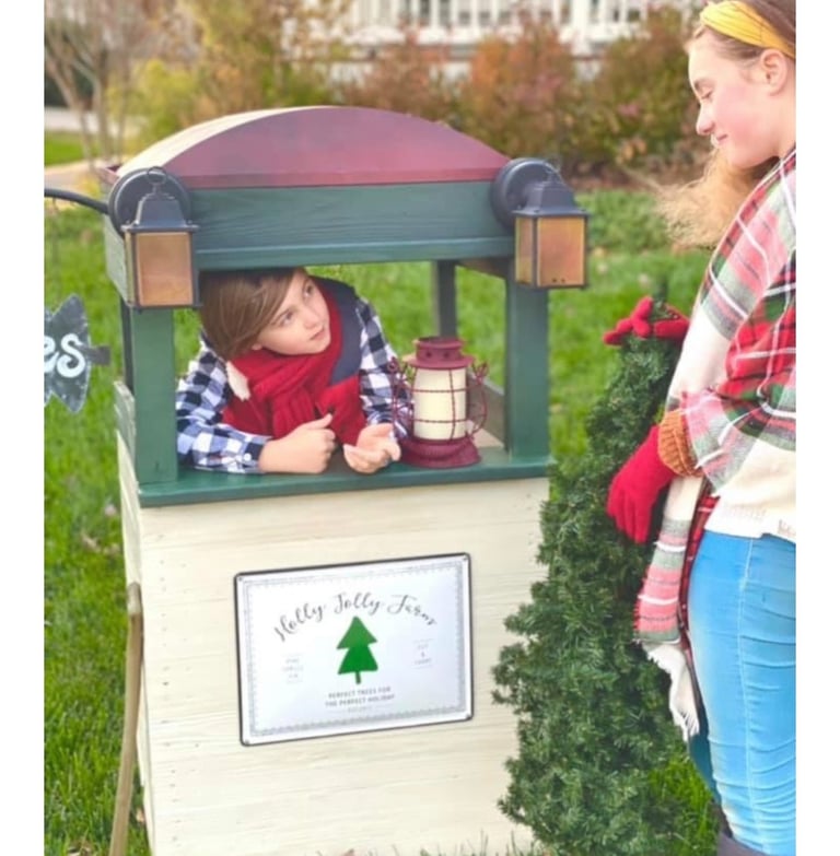 In the fall of 2017, I told Jordan, "I want a miniature tree farm in our front yard. One that looks like it's right out of a cheesy Christmas movie." That November, while I was at an advocacy assignment in Washington D.C., he built our tree farm. It was the perfect size for Lucy and Tag to play in and serve their imaginary yuletide shoppers.